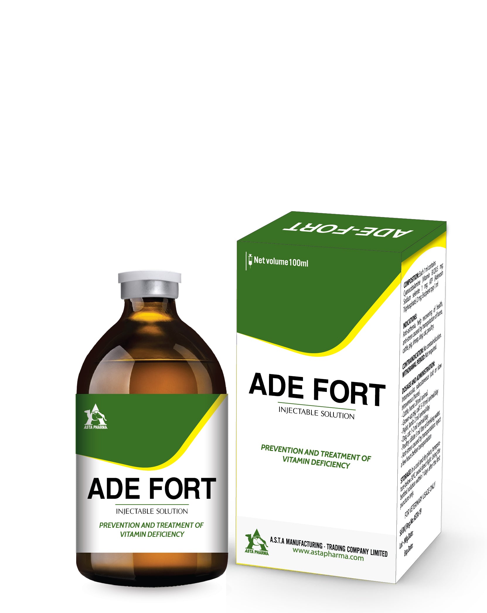 ADE FORT is intended for use as an aid in the prevention and treatment of vitamin A, D and E deficiencies in pigs, sheep and cattle.